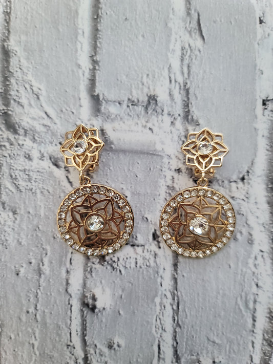 Goldtone & Crystal Clip-On Dreamcatcher Drop Earrings