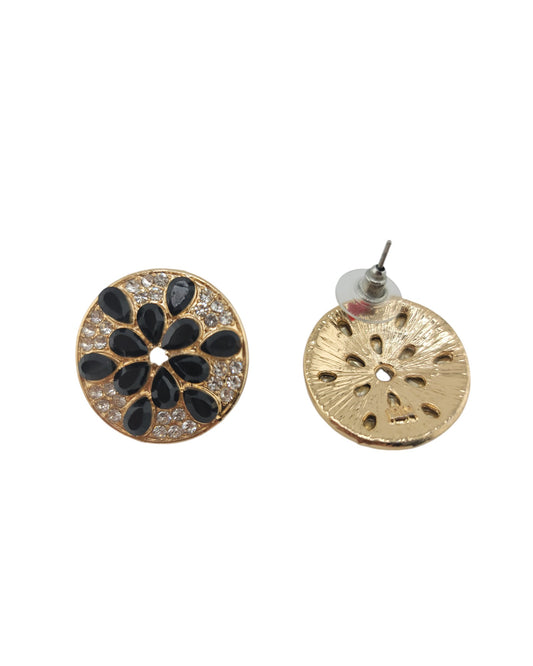 Vintage-Inspired Black & Gold Floral Stud Earrings