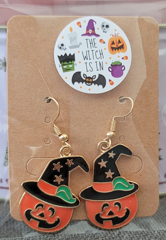 Halloween Horror Pumpkin Wooden Dangle Earrings