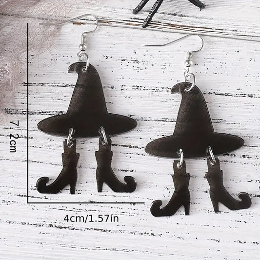Halloween Evil Witch's Hat Boots Black Dangle Earrings