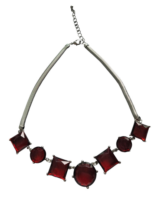Long silver Necklace with Red Stone
