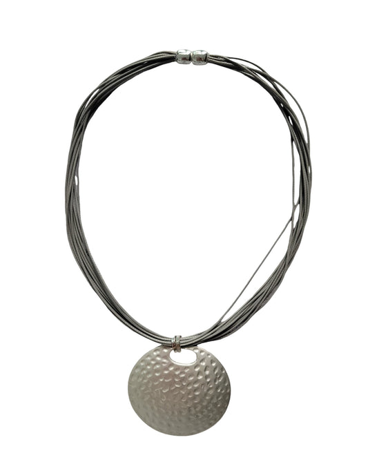 Multi Cord Necklace With Metal Circle Pendant