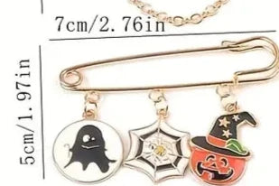 Cartoon Spider Ghost Spooky Pumpkin Brooch